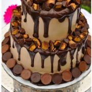 Traditionally, Africans did not cut cake at the wedding. In Kikuyu tradition, they cut the meat on the shoulder of a goat. Cakes came with European colonization. That said wedding cakes in Africa are taking on a more African feel. African wedding cake designs take on the form of safari themes, pot designs, earth colors and more. This one has the clean geometric look of African symbols, flowers and shields.